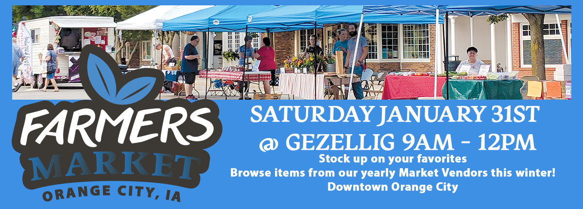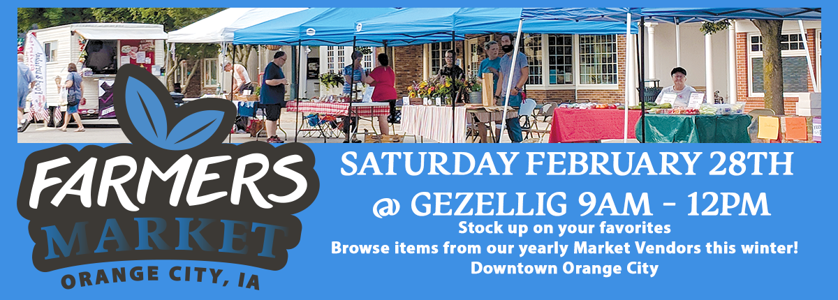 The Orange City Chamber Farmers Market provides access to fresh produce, homemade food and other locally produced products. We invite you to downtown Orange City to enjoy our town and all we have to offer every Saturday morning. This year we will have invited musicians and other artists in an effort to grow our market and bring something fun & fresh to downtown!